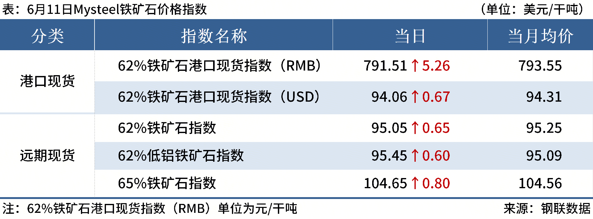 ◎ 6月11日,全國主港鐵礦石成交78.70萬(wàn)噸,環(huán)比減17.1%;237家主流貿易商建筑鋼材成交10.46萬(wàn)噸,環(huán)比增4.9%。