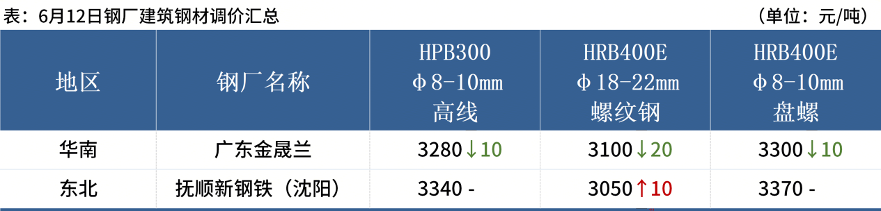 ◎ 6月12日,國內鋼材市場(chǎng)震蕩偏弱運行,唐山遷安普方坯出廠(chǎng)含稅下跌30報2890元/噸。