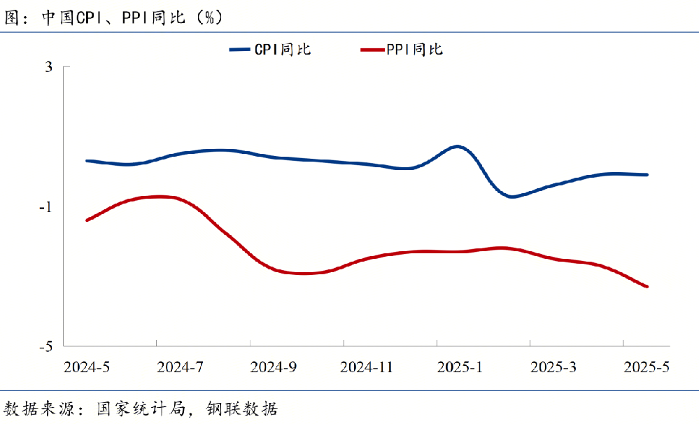 ◎ 國家統計局:5月份,中國CPI同比下降0.1%,降幅與上月持平。5月PPI同比下降3.3%,降幅比上月擴大0.6個(gè)百分點(diǎn)。其中,5月黑色金屬冶煉和壓延加工業(yè)同比下降10.2%,降幅比上月擴大1.6個(gè)百分點(diǎn)。