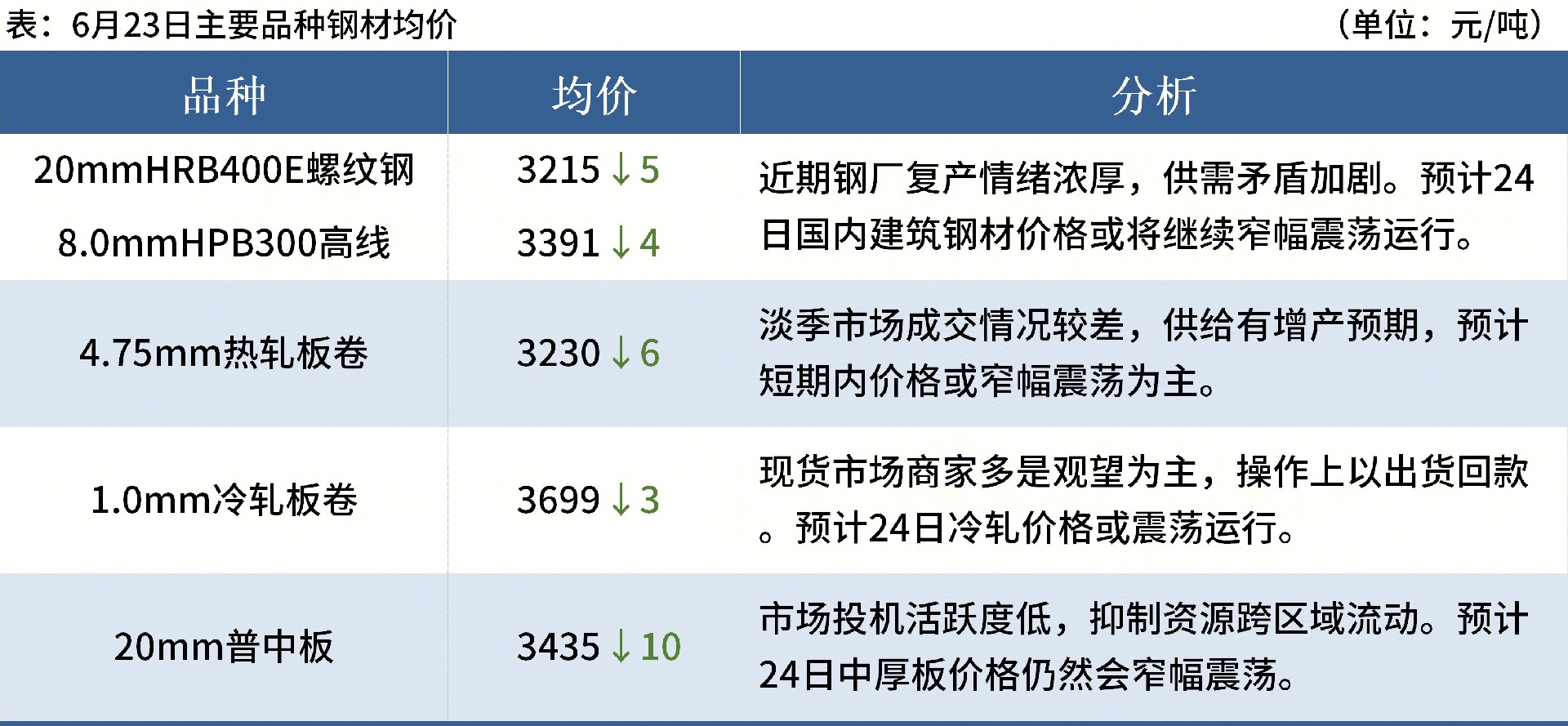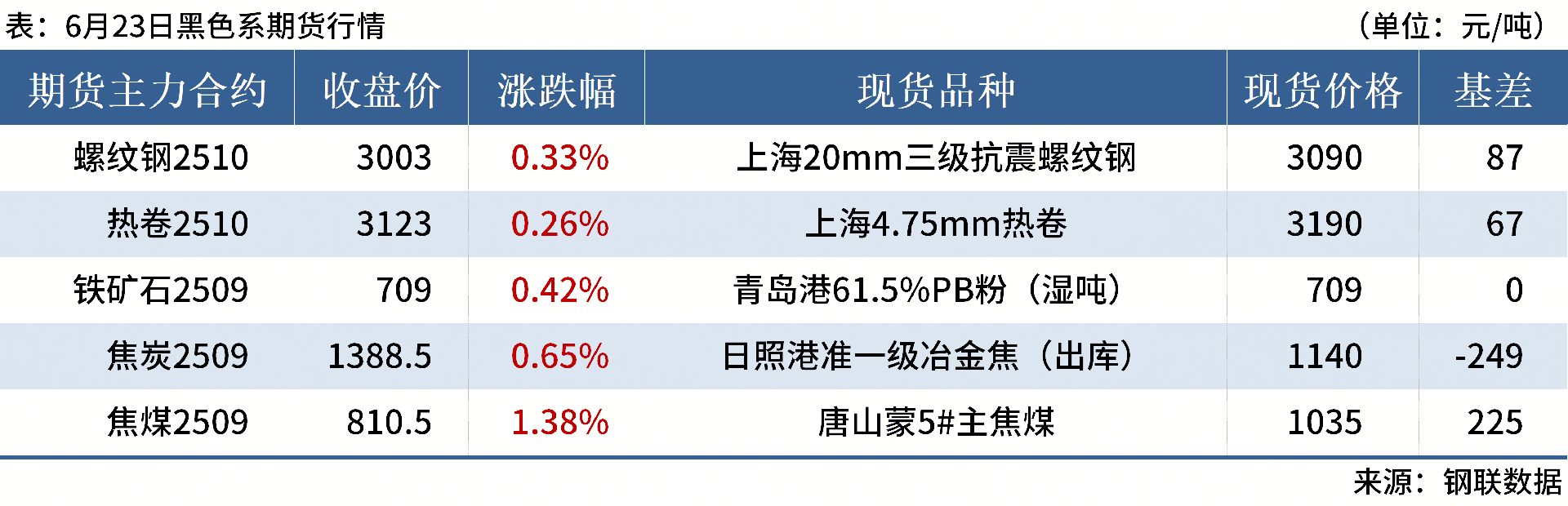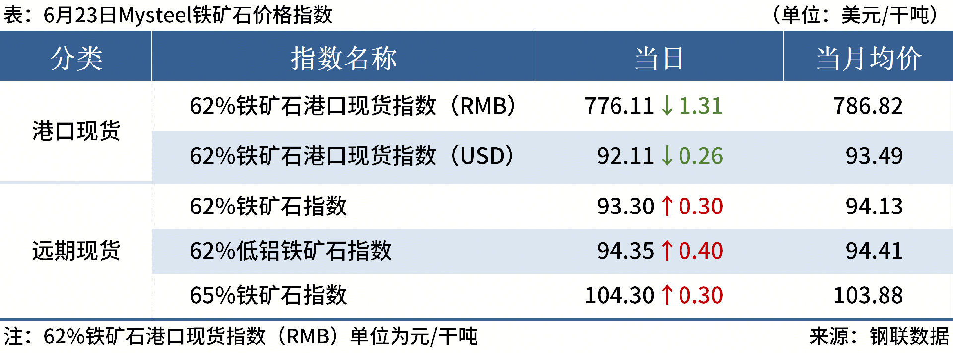 ◎ 6月23日,全國主港鐵礦石成交118.20萬(wàn)噸,環(huán)比增52.1%;237家主流貿易商建筑鋼材成交10.30萬(wàn)噸,環(huán)比增5.6%。