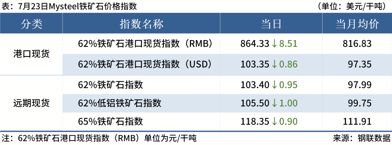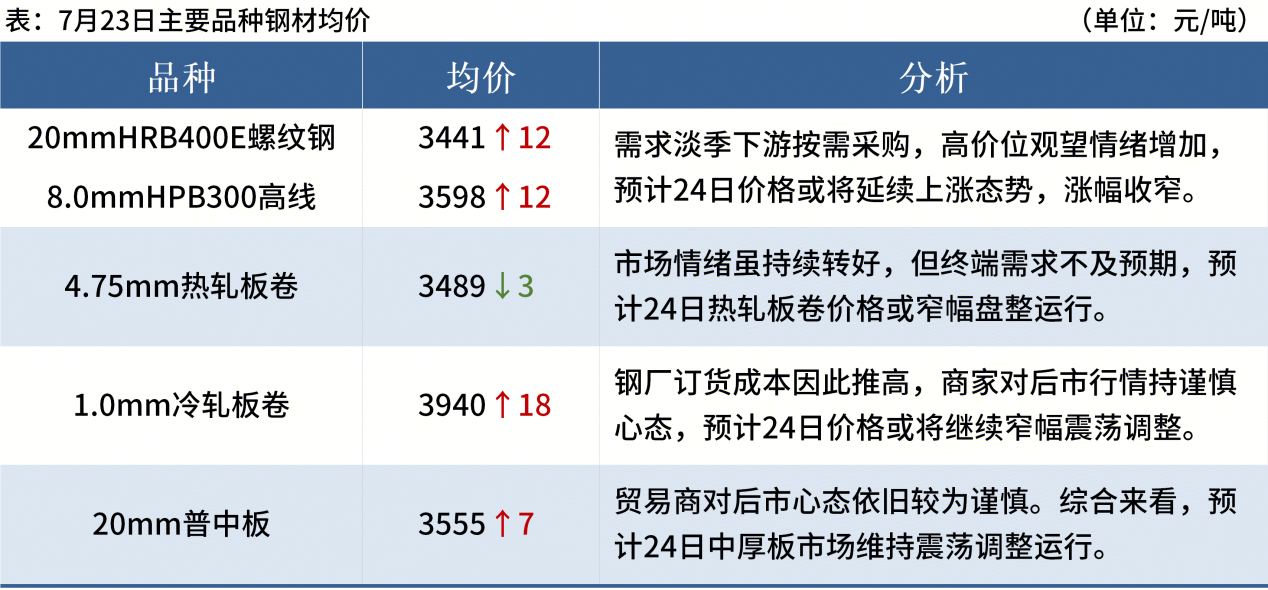 ◎ 7月23日,全國主港鐵礦石成交86.40萬(wàn)噸,環(huán)比減29.9%;237家主流貿易商建筑鋼材成交9.09萬(wàn)噸,環(huán)比減27.9%。