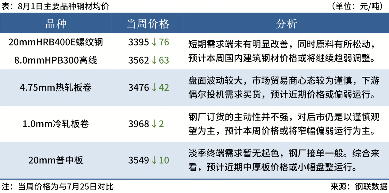 ◎ Mysteel首席分析師汪建華:8月鋼鐵市場(chǎng),產(chǎn)業(yè)人士的信心不足,仍對鋼材價(jià)格構成拖累,而供需或呈現雙弱的態(tài)勢,鋼材價(jià)格仍有階段性進(jìn)一步回調的壓力。但若鋼廠(chǎng)增強自律性控產(chǎn),疊加行政性指引,鋼價(jià)才有震蕩反彈的空間。詳情>>