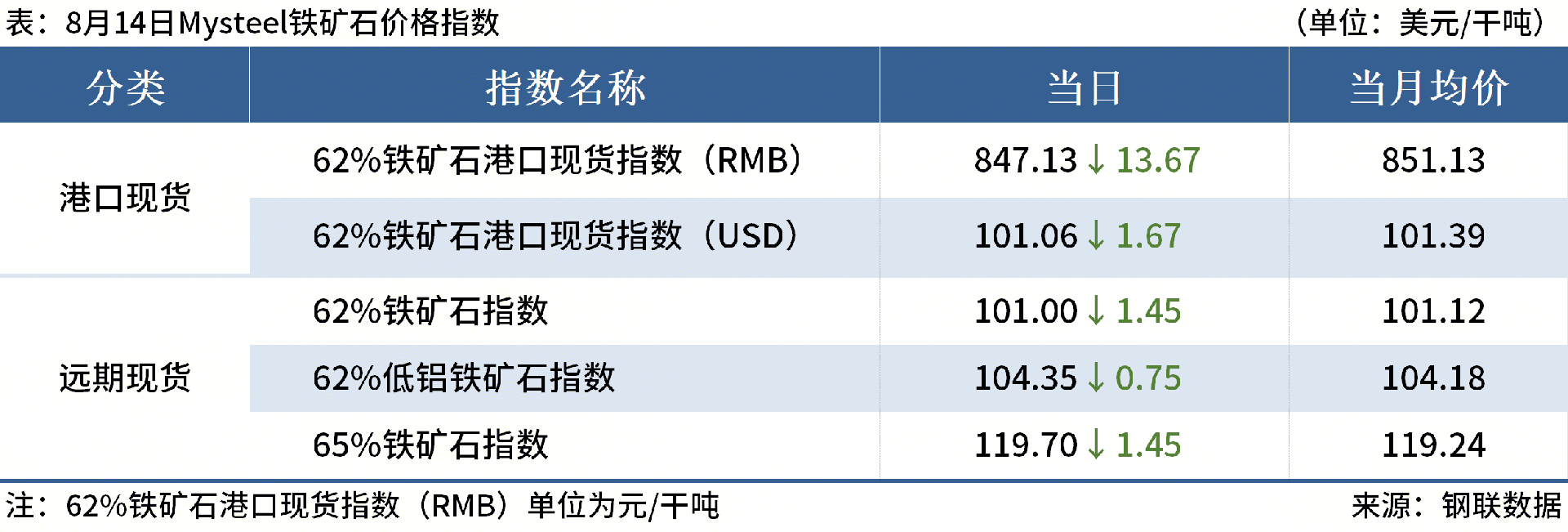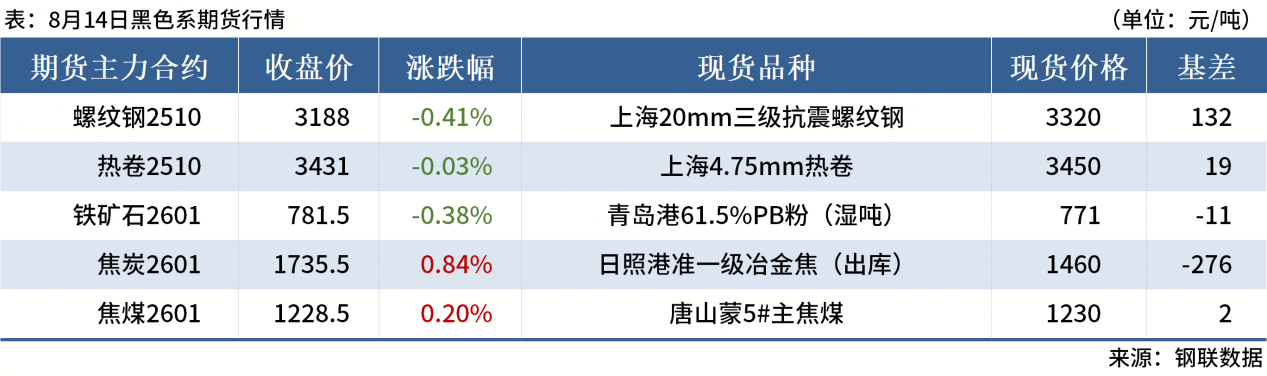 ◎8月14日,全國主港鐵礦石成交130.20萬(wàn)噸,環(huán)比增54.6%;237家主流貿易商建筑鋼材成交8.38萬(wàn)噸,環(huán)比減8.2%。