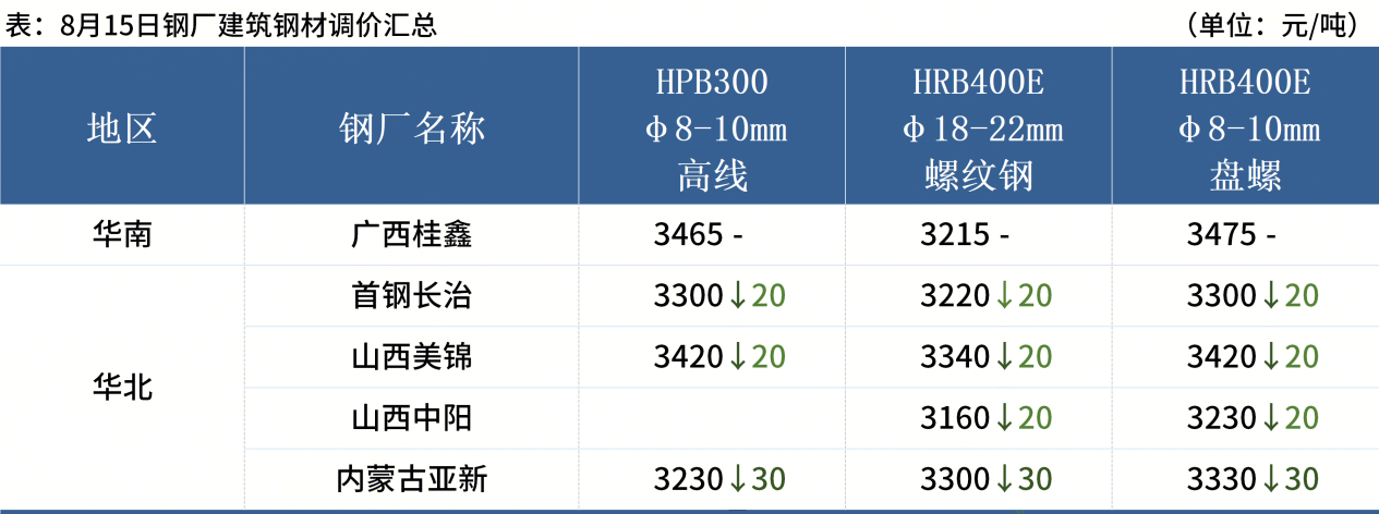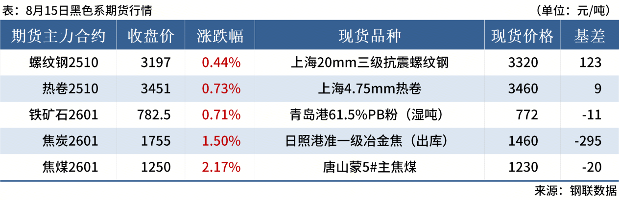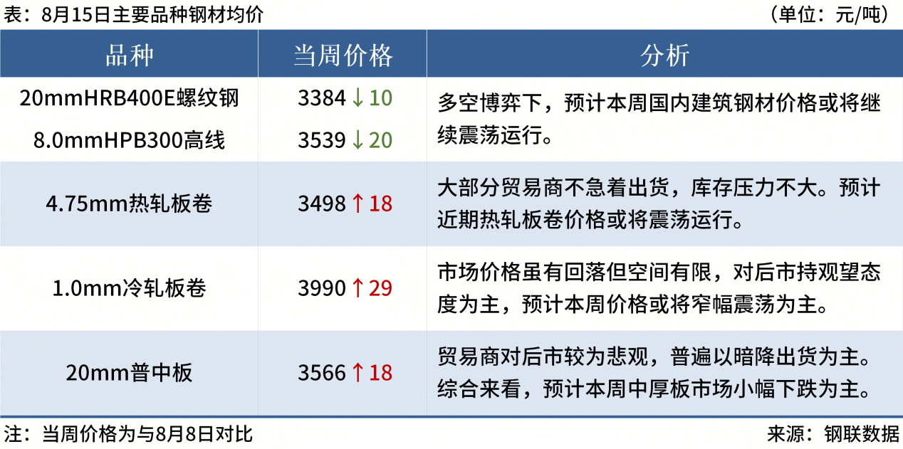 ◎ 8月15日,全國主港鐵礦石成交105.60萬(wàn)噸,環(huán)比減18.9%;237家主流貿易商建筑鋼材成交10.51萬(wàn)噸,環(huán)比增25.4%。