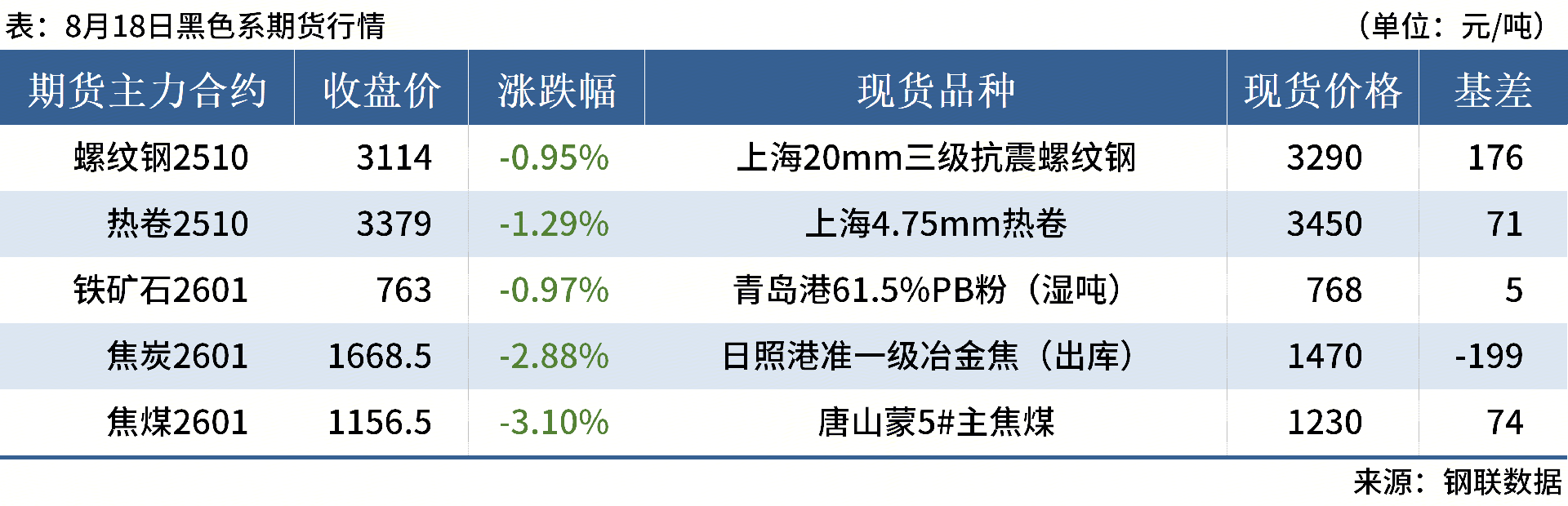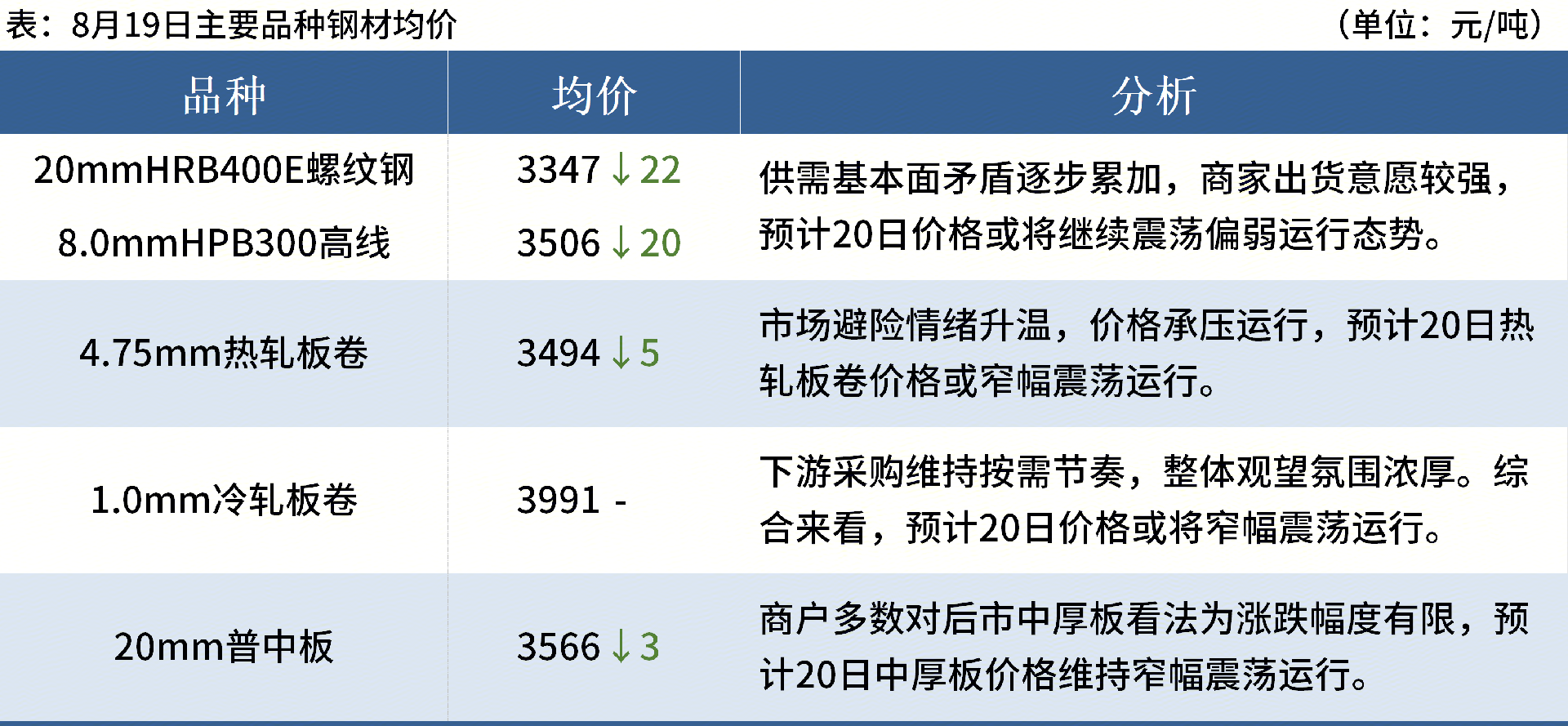 ◎ 8月19日,全國主港鐵礦石成交115.00萬(wàn)噸,環(huán)比增14.7%;237家主流貿易商建筑鋼材成交9.09萬(wàn)噸,環(huán)比減3%。