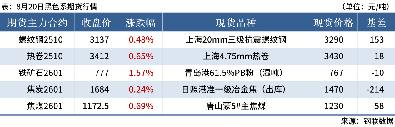 ◎ 8月20日,全國主港鐵礦石成交119.00萬(wàn)噸,環(huán)比增3.5%;237家主流貿易商建筑鋼材成交10.22萬(wàn)噸,環(huán)比增12.4%。