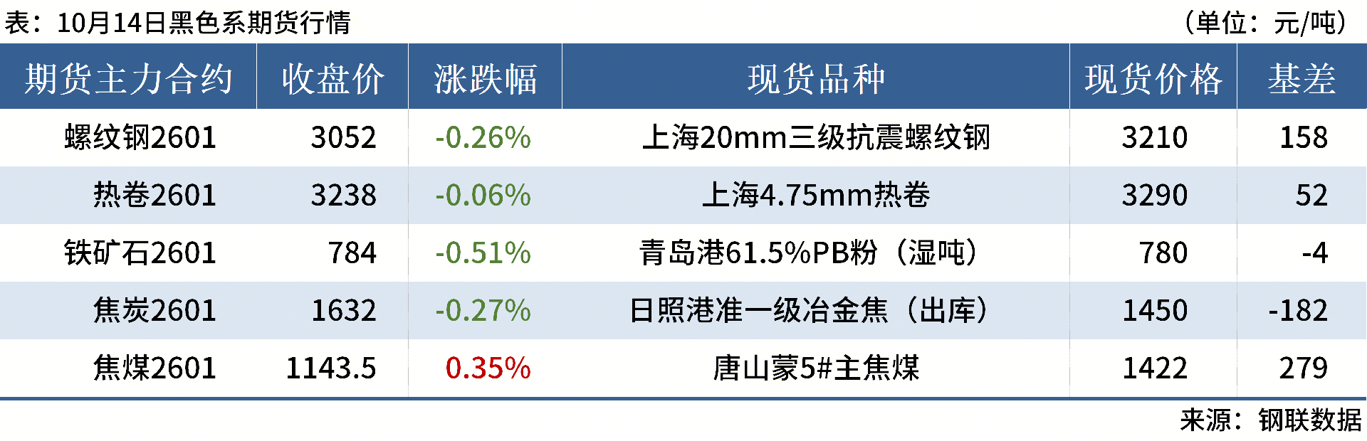 ◎ 10月14日,全國主港鐵礦石成交185.90萬(wàn)噸,環(huán)比增95.3%;237家主流貿易商建筑鋼材成交9.46萬(wàn)噸,環(huán)比減10.8%。