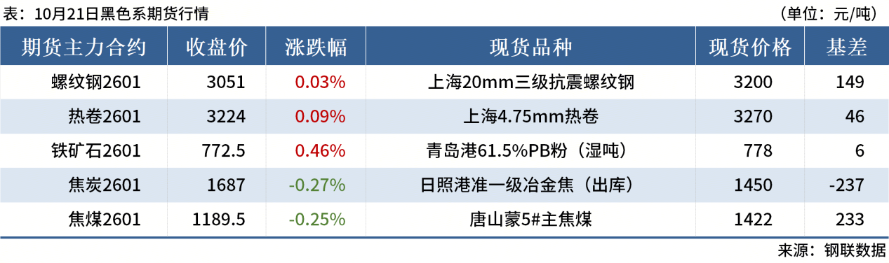 ◎10月21日,全國主港鐵礦石成交101.10萬(wàn)噸,環(huán)比增19.8%;237家主流貿易商建筑鋼材成交10.12萬(wàn)噸,環(huán)比增3.5%。