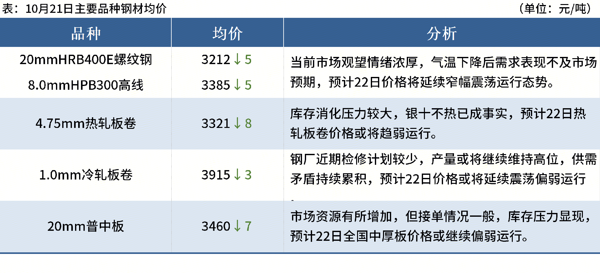 ◎10月21日,江蘇永鋼出臺10月下旬出廠(chǎng)價(jià),螺紋鋼下調50元/噸、線(xiàn)材盤(pán)螺下調50元/噸,現螺紋鋼3400元/噸,線(xiàn)材盤(pán)螺3600元/噸。