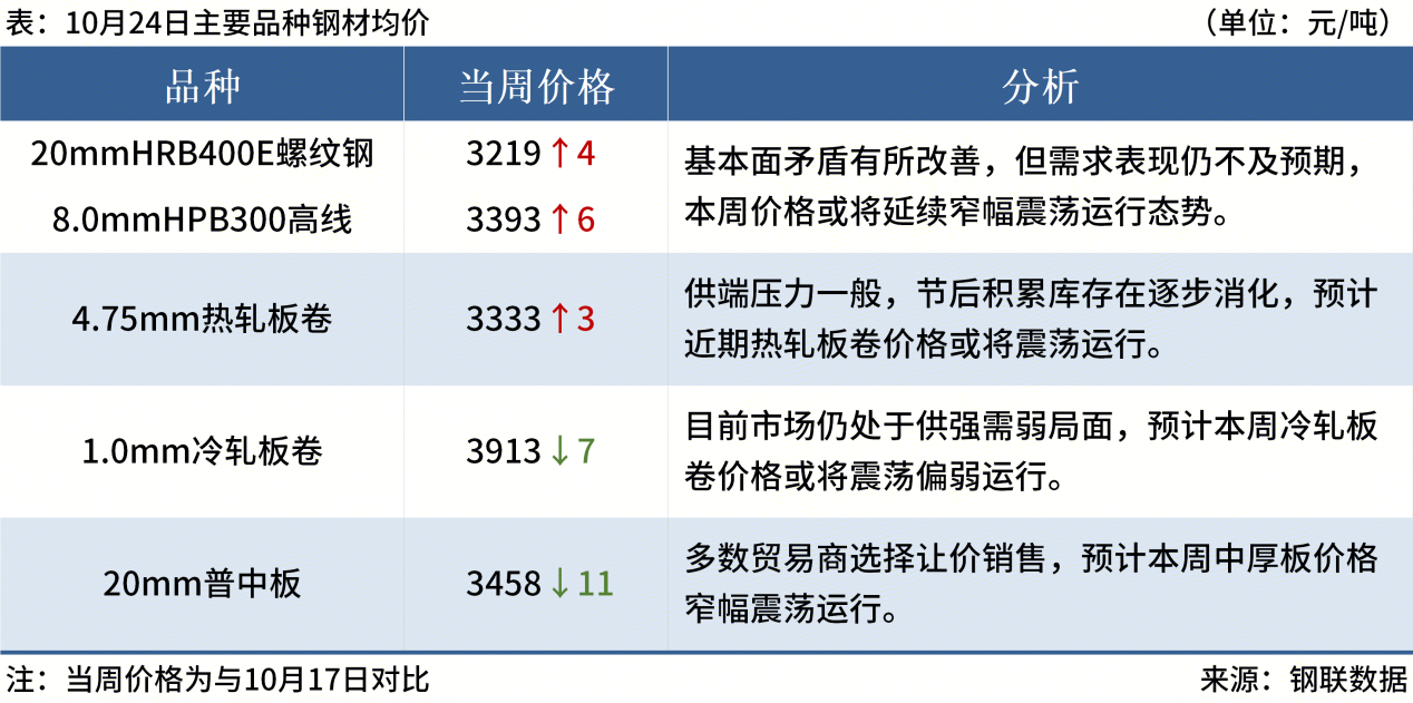 ◎ 10月24日,全國主港鐵礦石成交80.20萬(wàn)噸,環(huán)比減16.4%;237家主流貿易商建筑鋼材成交9.11萬(wàn)噸,環(huán)比減13.5%。