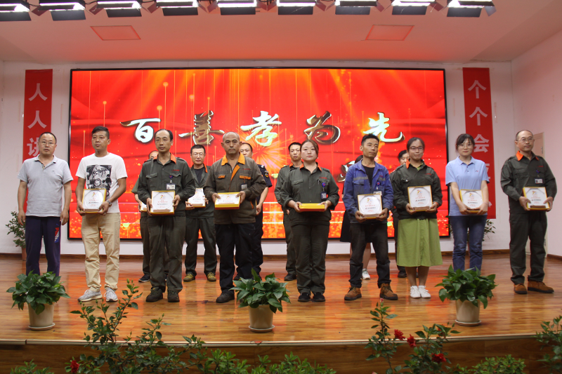 匯演期間廠(chǎng)領(lǐng)導分別為安全月期間舉行的“最佳安全小劇場(chǎng)”、“應急救援演練比武”、“安全之歌優(yōu)秀班組”、“模范班前會(huì )”、“隱患排查小能手”、“京華孝敬之星”等活動(dòng)的獲獎人員進(jìn)行頒獎。